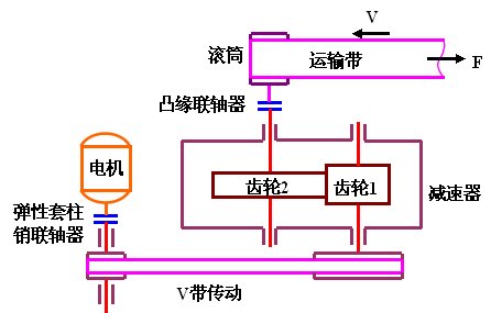 η= η2聯軸器 · η帶傳動 · η圓柱齒輪 · η3滾動軸承· η滾筒