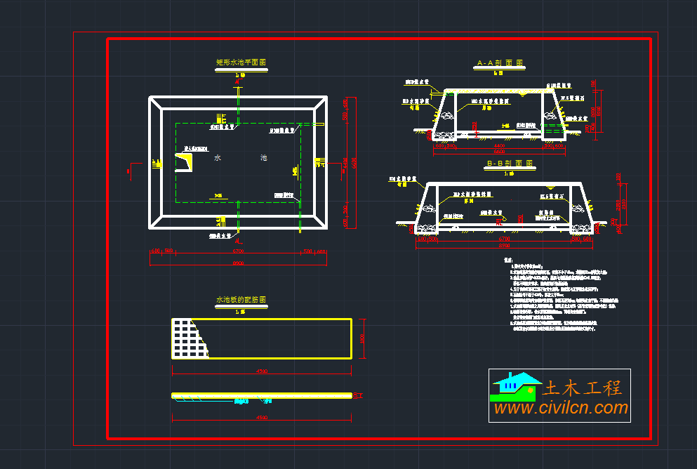 地面式矩形漿砌石水池總圖紙水利cad圖素材 ...
