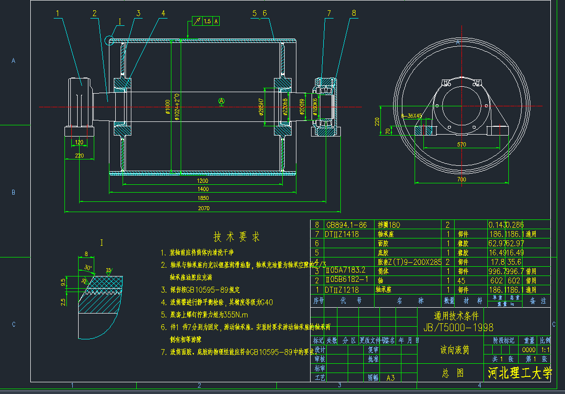 DTII改向滾筒CAD圖紙_下載(dwg格式) 機械圖紙