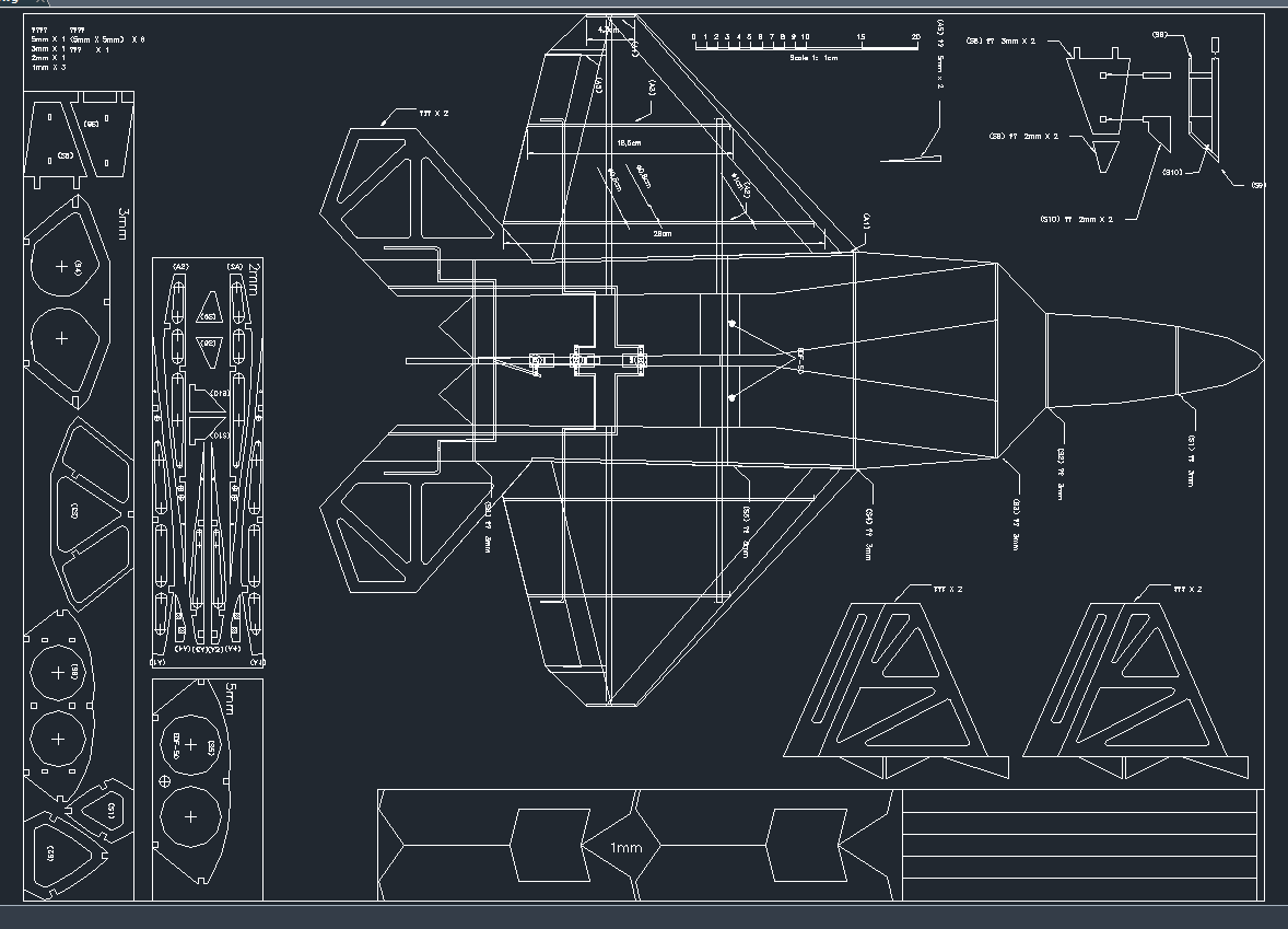 F-22電動導風扇飛機設計圖檔飛機模型圖CAD圖紙_下載(dwg格式) 機械圖紙
