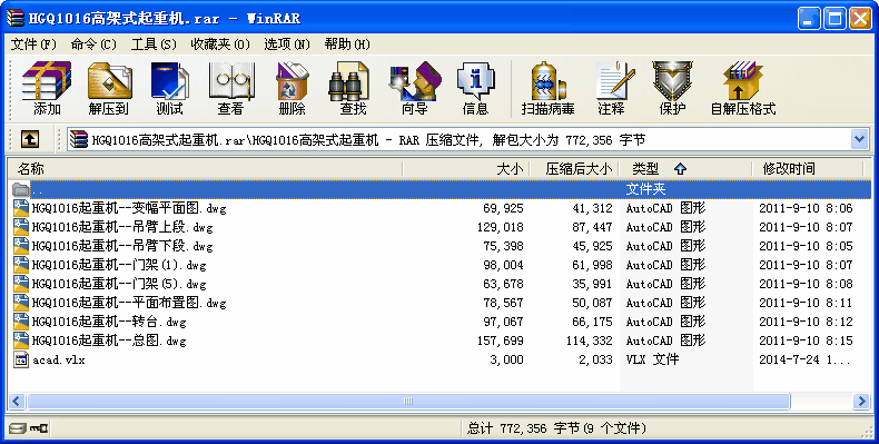 HGQ1016高架式起重機(jī)_下載(rar格式) 機(jī)械圖紙