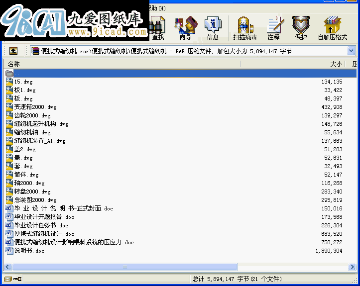 便攜式縫紉機(jī)_下載(rar格式) 成套圖紙