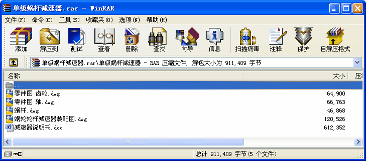 單級蝸桿減速器_下載(rar格式) 成套圖紙
