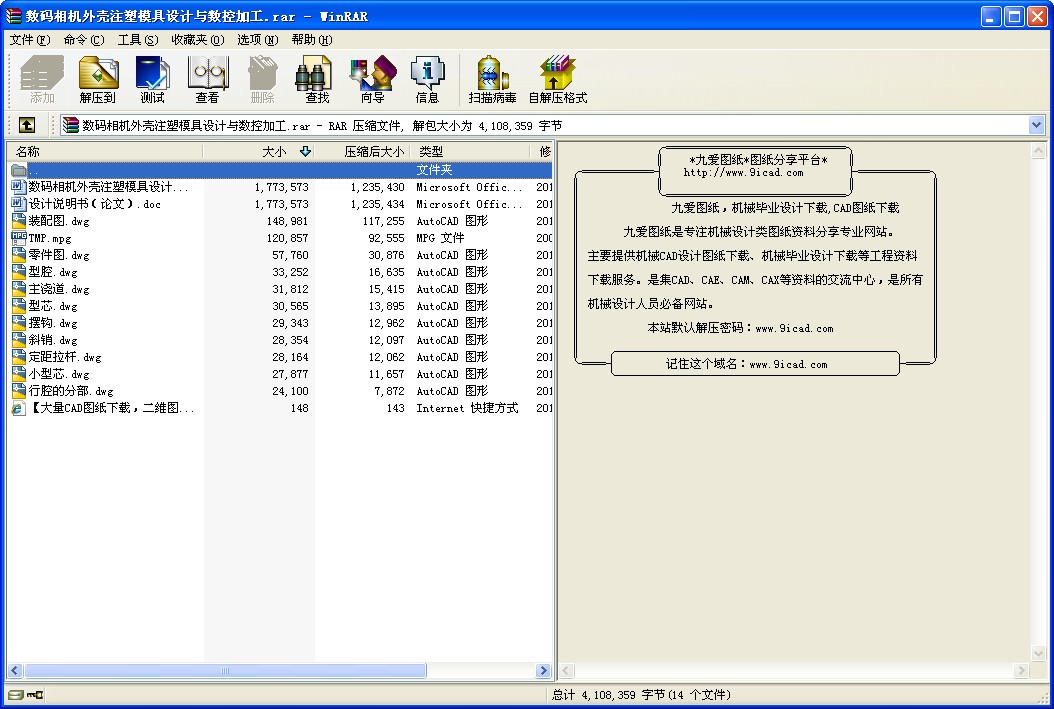 數碼相機外殼注塑模具設計與數控加工_下載(rar格式) 成套圖紙